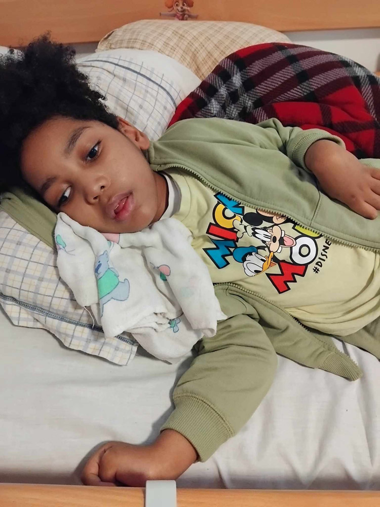 O nosso príncipe era uma criança saudável, mas infelizmente aos 2 anos de idade e por causa de uma queda do trampolim foi diagnosticado com paralisia cerebral grave. Os médicos disseram que ele não iria sobreviver devido aos enormes coágulos de sangue que ele tinha nos dois lados do cérebro, mas o nosso guerreiro resistiu. Apesar da sua força, o impacto foi profundo: o Josemar deixou de ver, andar, falar e é alimentado por botão gástrico (PEG) sendo dependente a 100%.