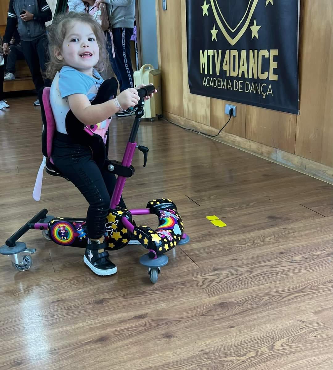 Por forma a proporcionar uma melhor qualidade de vida no seu dia-a-dia e conciliar com as terapias (fala e ocupacional), a Margarida necessita com urgência de um Triciclo Pediátrico Roma Tomcat Tiger orçamentado em 2003,40 € (dois mil e três euros e quarenta cêntimos). Este equipamento é fundamental para obter progressos na sua mobilidade e para que não haja regressão juntamente com as terapias, permitindo assim melhorar a sua qualidade de vida.